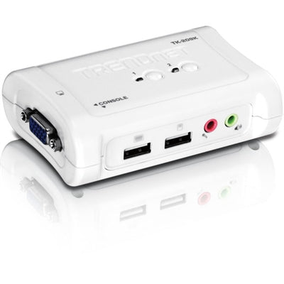 The 2-Port USB Audio KVM Switch lets you control multimedia PCs with just one keyboard, monitor, mouse,...