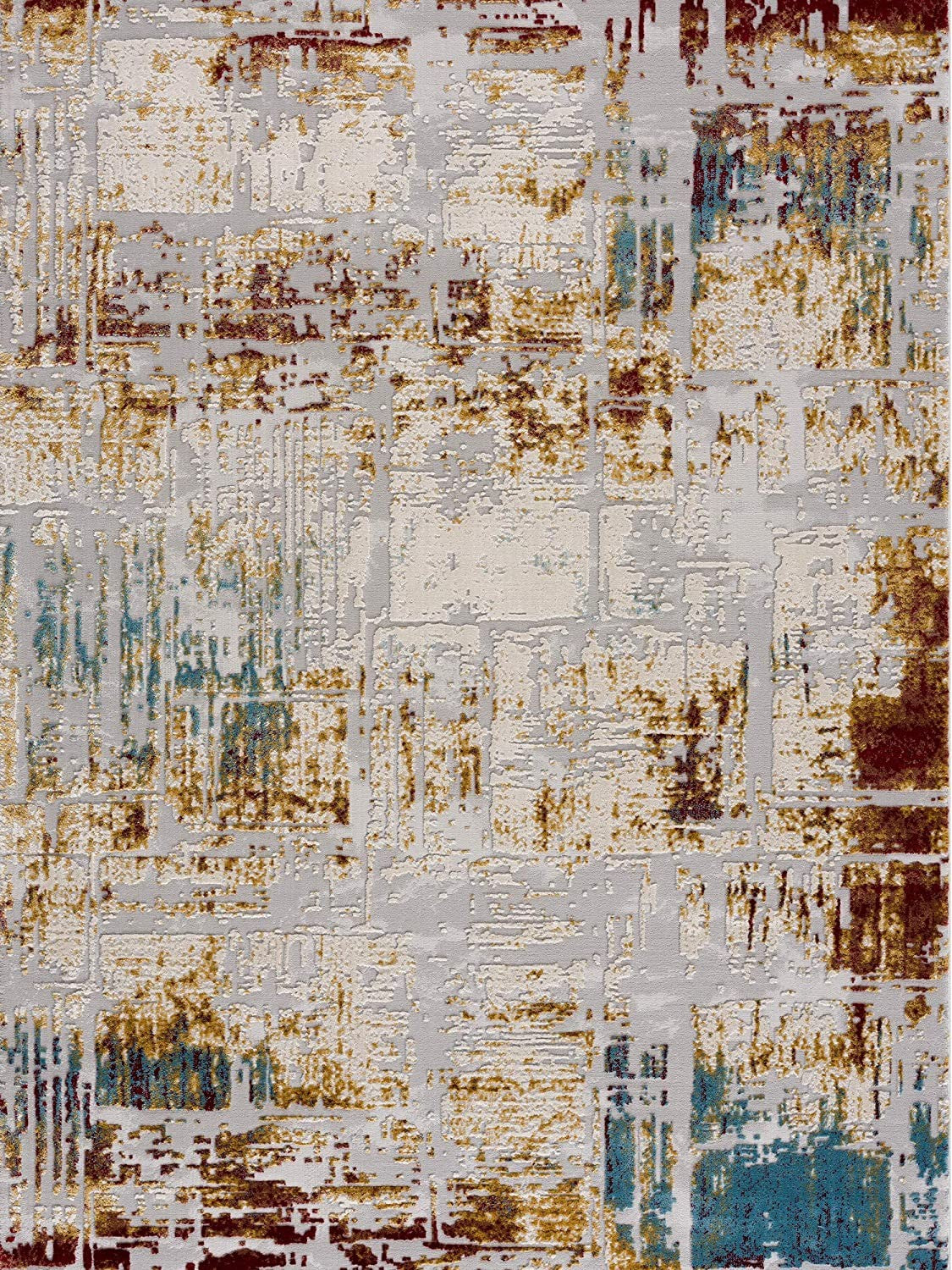 2’ x 13’ Abstract Beige and Gold Modern Runner Rug