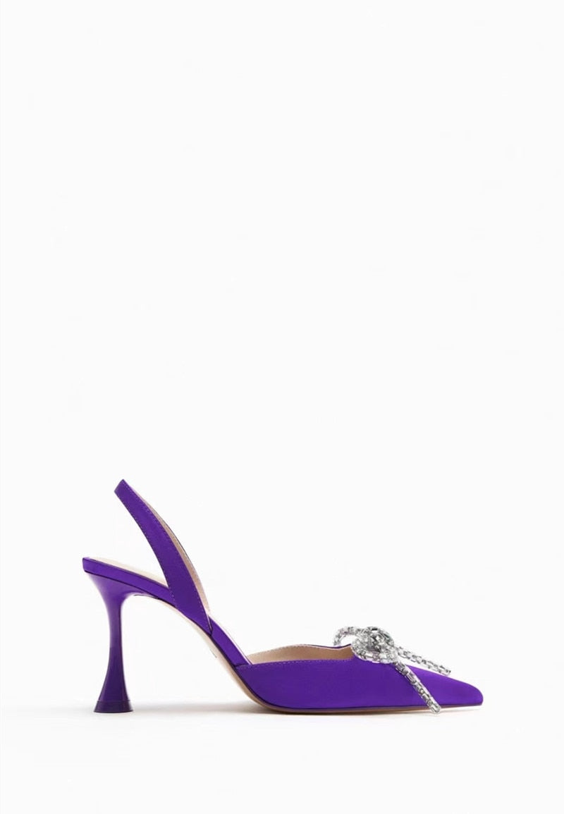 2023 Summer New Women's Shoes Fashion Rhinestone Bow High Heels Fine Heel Pointed Toe Back Strap Baotou Sandals Mule Shoes