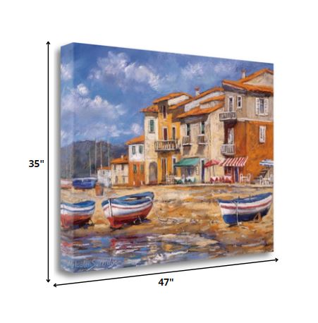 47" Boats Docked Near Cafes Bright Sunny Day Giclee Wrap Canvas Wall Art