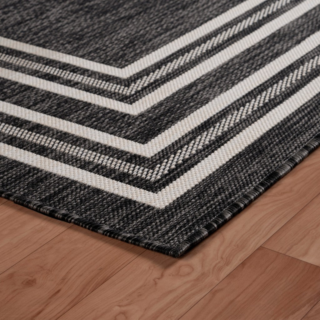 5’ x 7’ Gray Striped Border Indoor Outdoor Area Rug