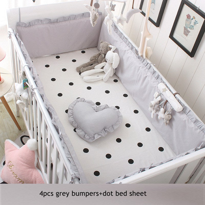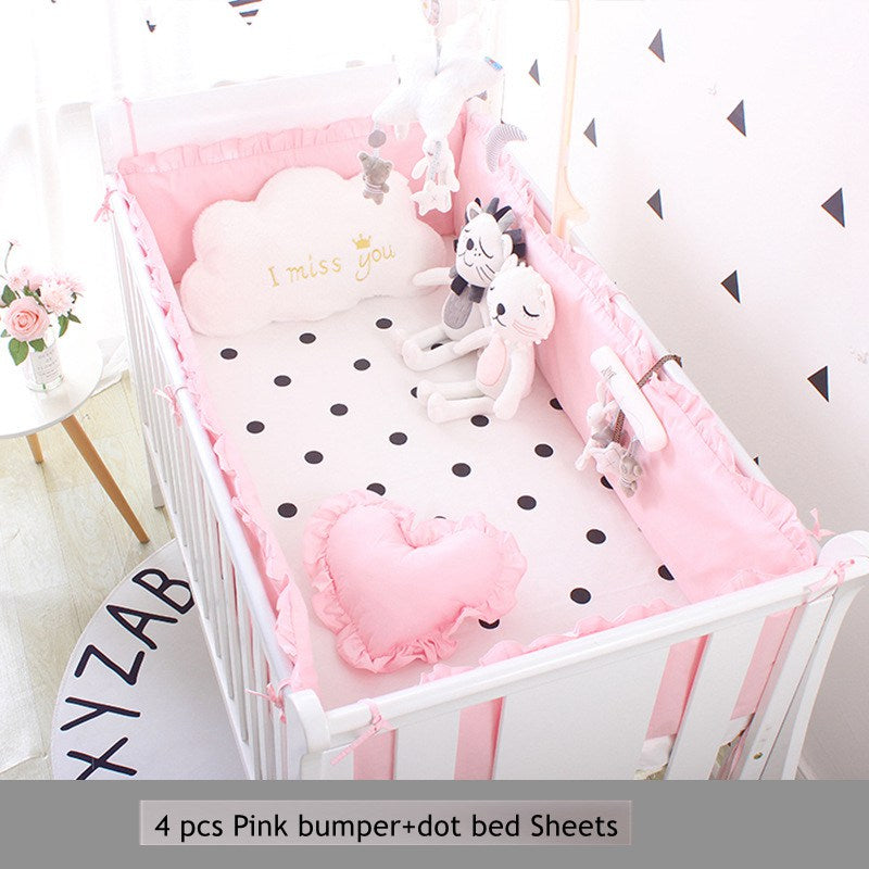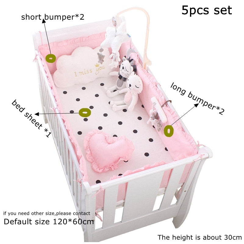 5pcs Set Baby Sweet Pink Dot Cot Bumpers Bed Sheet Bed Surrounding Cotton Craddle Bedding Baby Bedroom Supplies