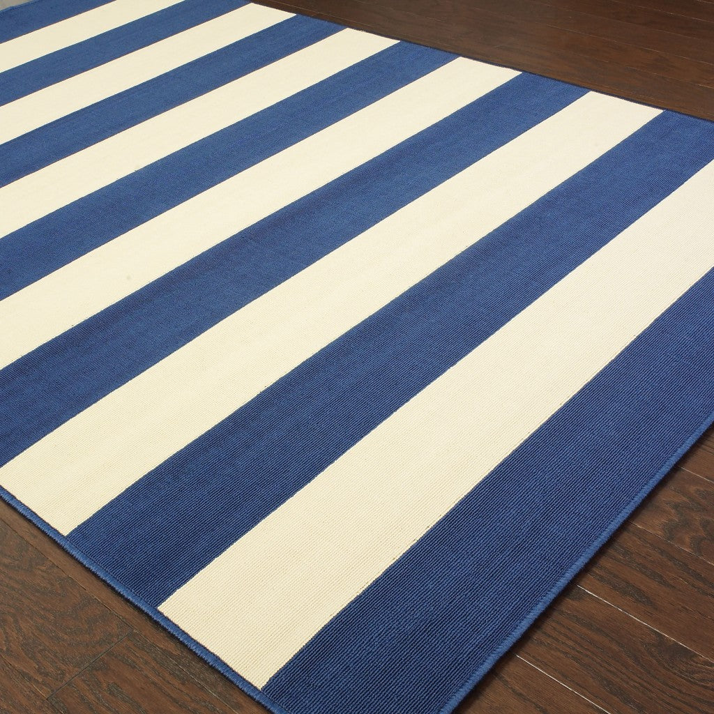 9’x13’ Blue and Ivory Striped Indoor Outdoor Area Rug