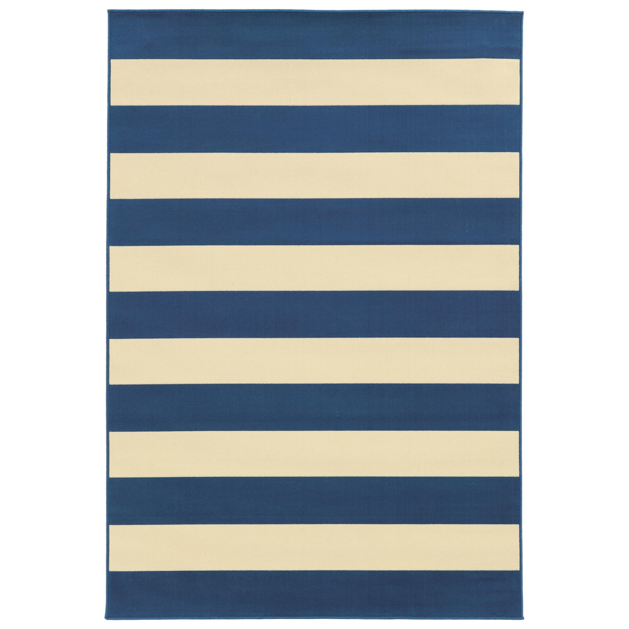 Transform your indoor areas or outdoor patio with this classy Blue and Ivory Striped Indoor Outdoor Area...