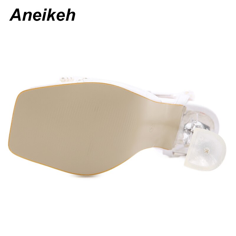 Aneikeh 2023 Summer White String Bead High Heels Wedding Shoes Butterfly-Knot Narrow Band Thin Heels Square Toe Party Sandals
