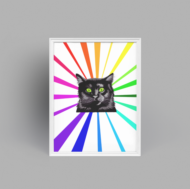 I am so proud of this one! Designed to mimic my cat, Pepper, the Black Cat Prism Print is vibrant and fun.