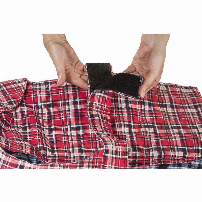 This Red Tartan dog coat is an outdoor gear essential that will brighten any winters day. The unique design of our dog coat allows it to wrap around the chest area to cover and provide extra protection from rain and mud. Easy to fit with velcro straps on top.