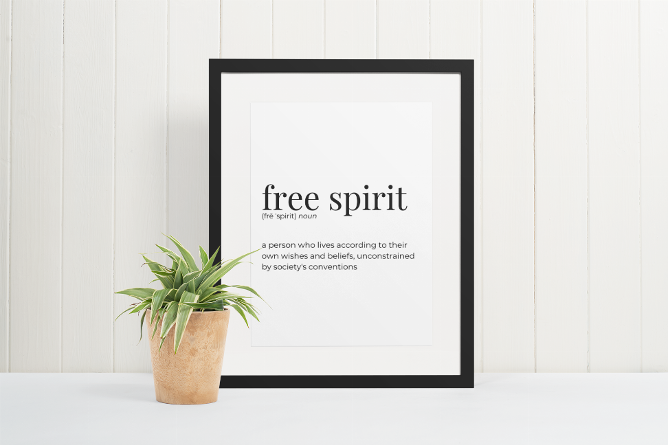 Free Spirit: a person who lives according to his or her own wishes and beliefs, unconstrained by society's conventions.