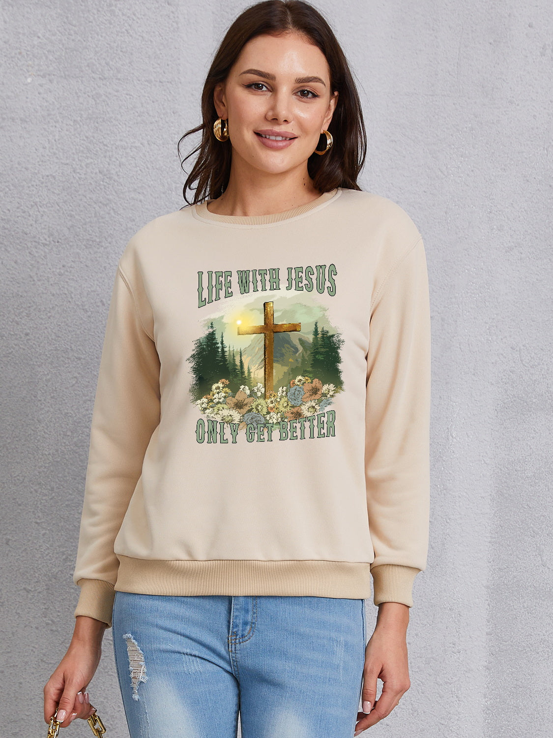 Graphic Round Neck Dropped Shoulder Sweatshirt