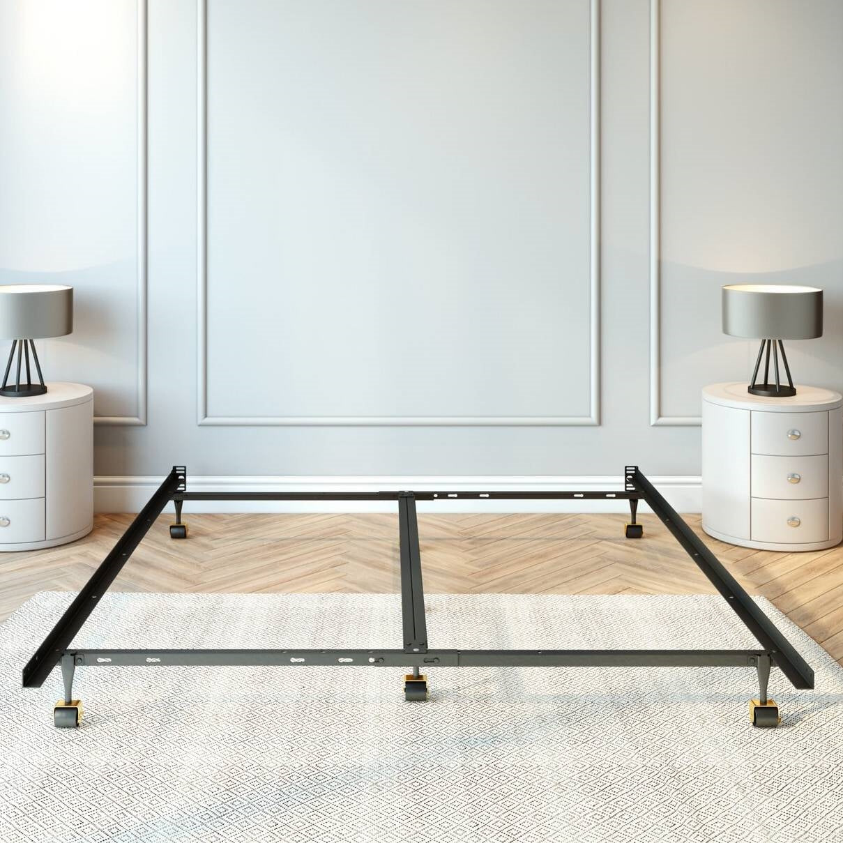 King size Heavy Duty 7-Leg Metal Bed Frame with Locking Rug Roller Casters Wheels