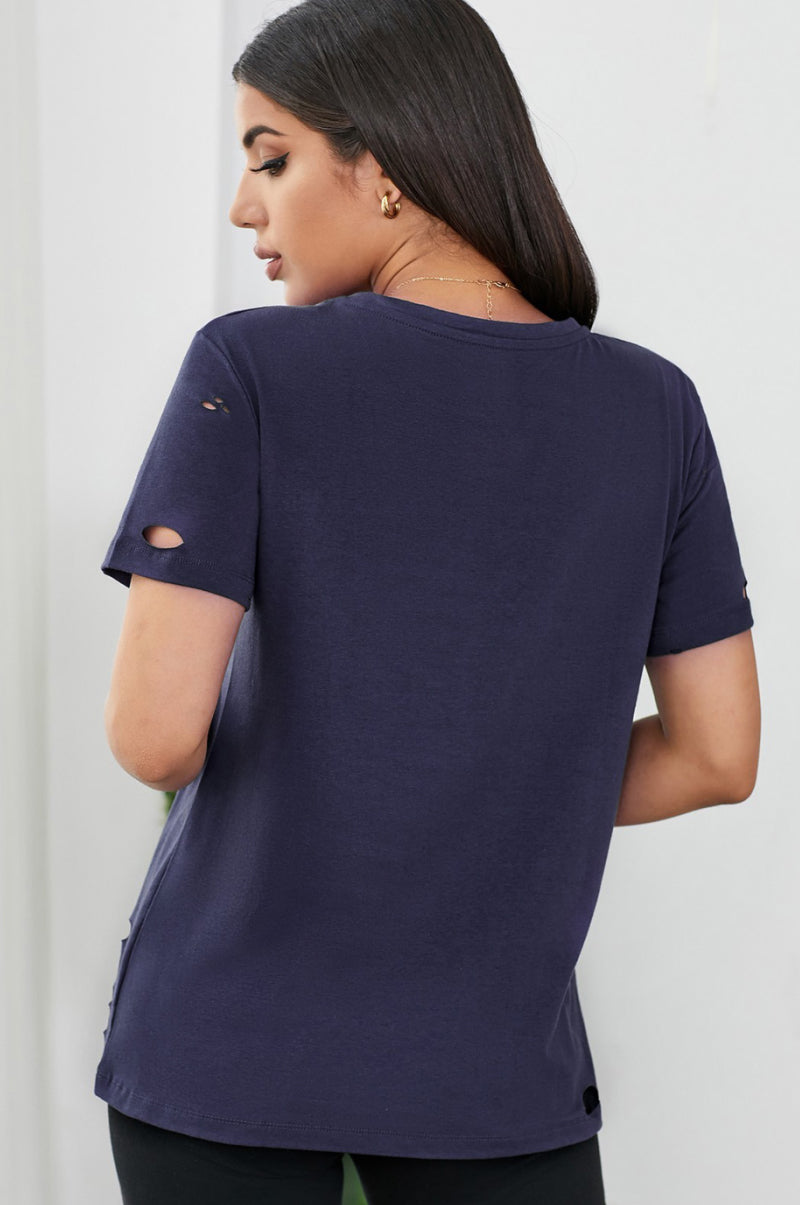 Feel good in this relaxed shirt cut from lightweight and breathable cotton fabric, while the leopard lip and distressed details give this shirt a stylish touch.