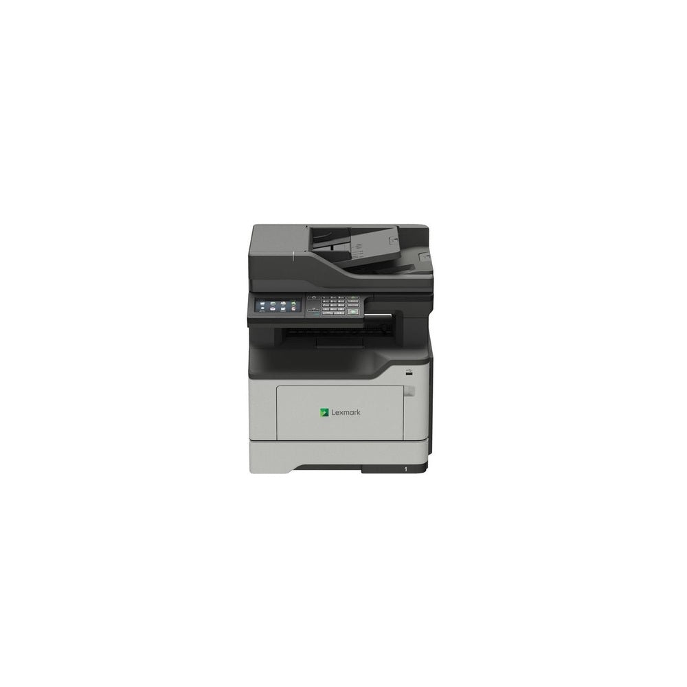 Multifunction laser printer with a 2.4" LCD prints at up to 38 pages per minute and offers fax, copy functions and more. 1 GHz dual-core processor with 1GB of standard memory gives you the power to fax, print, copy and scan for maximum productivity. Make every watt count with energy-management features that reduce power consumption whether it's active or in sleep mode. The included media tray adjusts to paper sizes from A6 to legal while the 100-sheet multipurpose feeder accepts smaller media and envelopes to give you even more design and output possibilities. Full-spectrum security features help keep your information safe and enables you to be GDPR-ready. Standard Wi-Fi means convenient and secure connectivity while the Lexmark Mobile Assistant app allows fast, easy setup directly from your mobile device. Laser printer also includes 1024MB memory, 250-sheet input tray and more. Optional input tray is available but not included.
