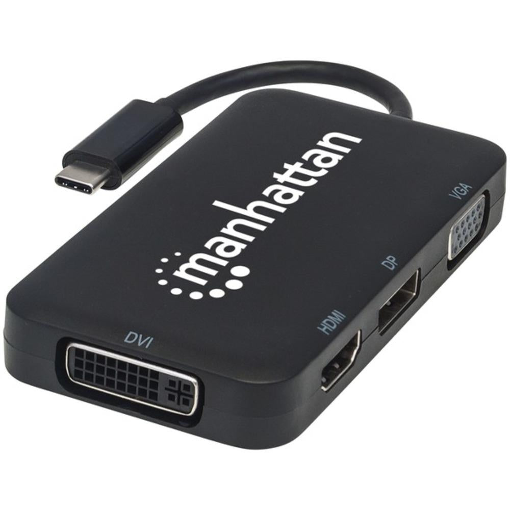 The Manhattan USB-C 4-in-1 Audio/Video Converter establishes a fast, simple and convenient link between newer USB Type-C equipped media sources (computers, tablets, Smartphones, etc.) and existing HDMI, DisplayPort, VGA or DVI displays (monitors, projectors, etc.). The Manhattan USB-C 4-in-1 Audio/Video Converter is easy and quick to install - no complicated configuration or setup required. Its all-in-one design achieves a compact, integrated solution that eliminates unnecessary cables, tangles and clutter to keep installations and workspaces neat and orderly. Extend the service life of your equipment, and fully realize the investment and value of your HDMI, DP, VGA or DVI displays, projectors and peripherals with a Manhattan USB-C 4-in-1 Audio/Video Converter.