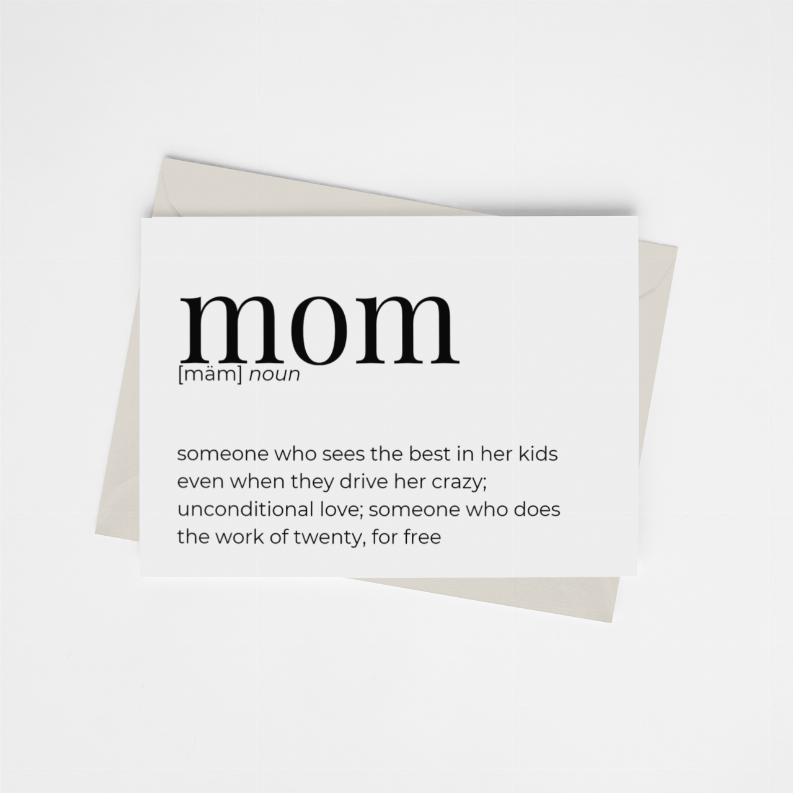 Mom: someone who sees the best in her kids even when they drive her crazy; unconditional love; someone who does the work of twenty, for free