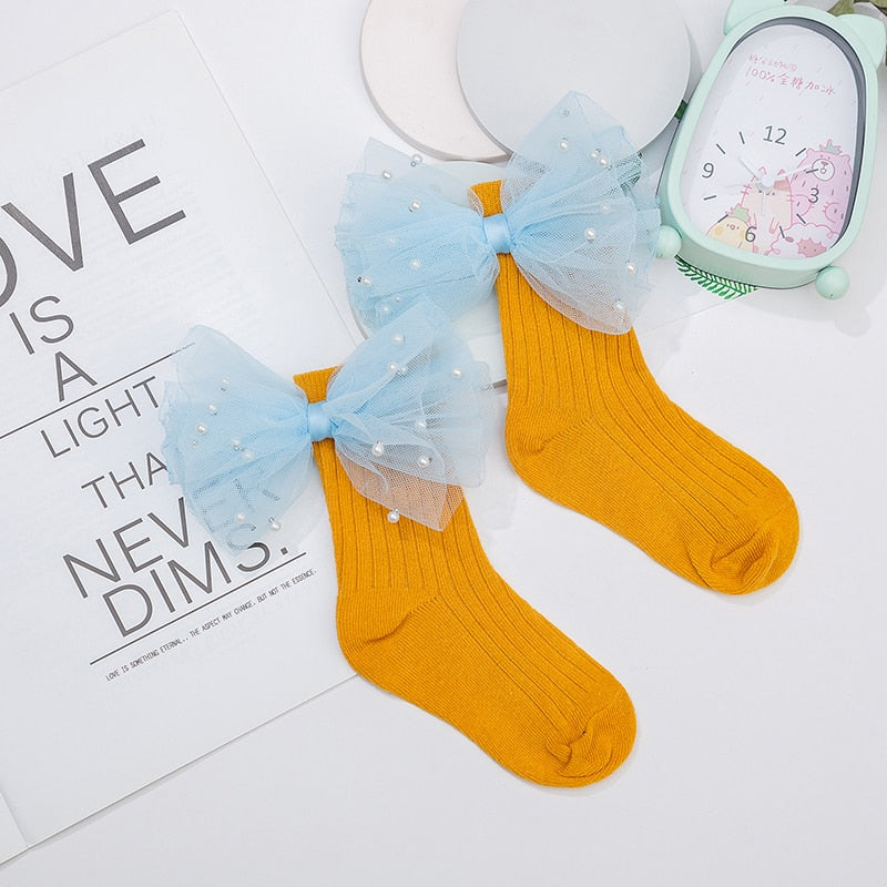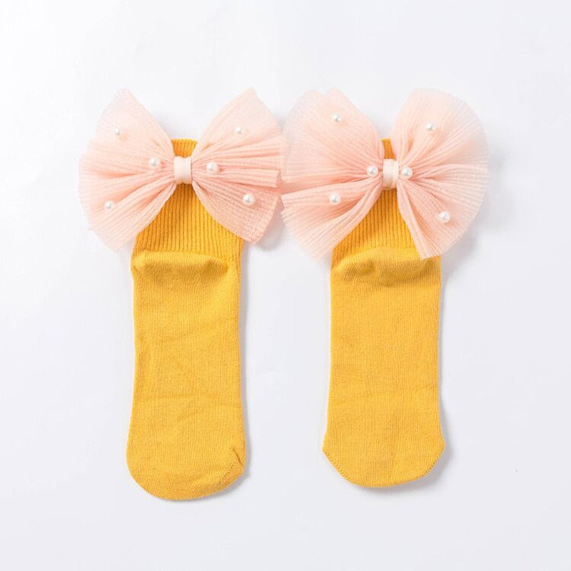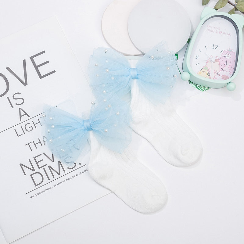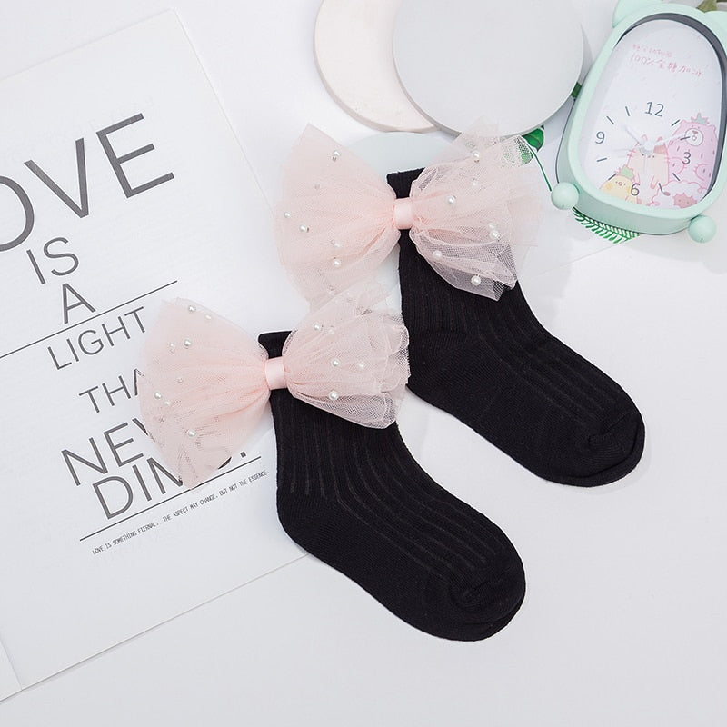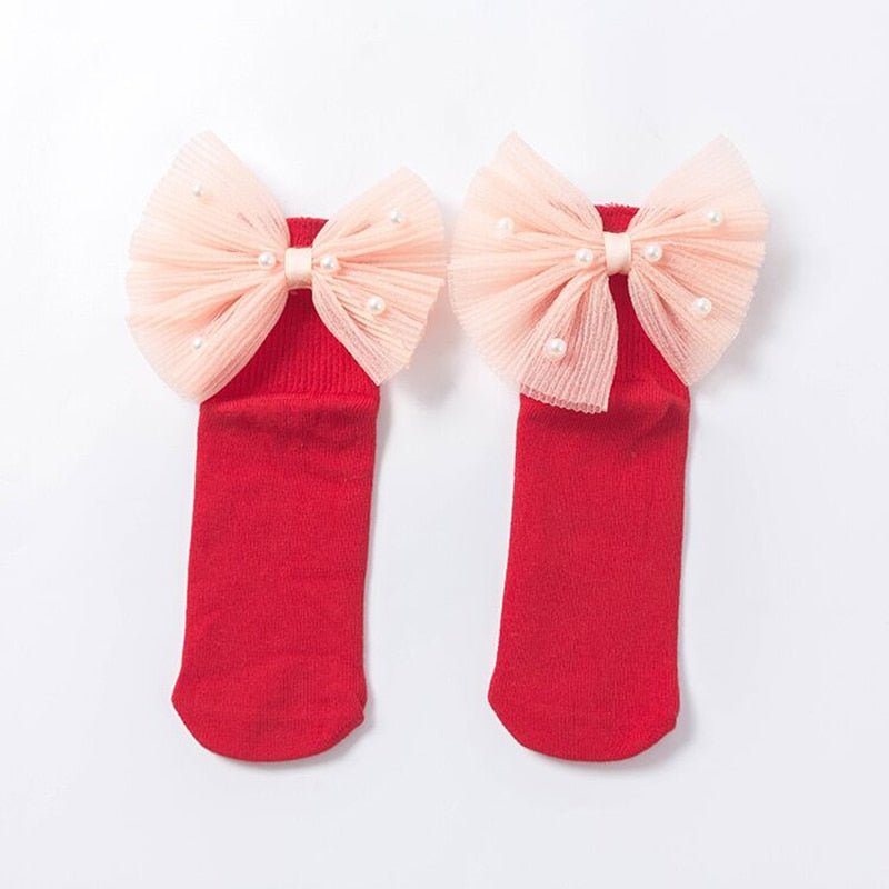 New Baby Girls Socks With Bows Toddlers Infants Cotton Ankle Socks Beading Baby Girls Princess Sock Cute Children Socks