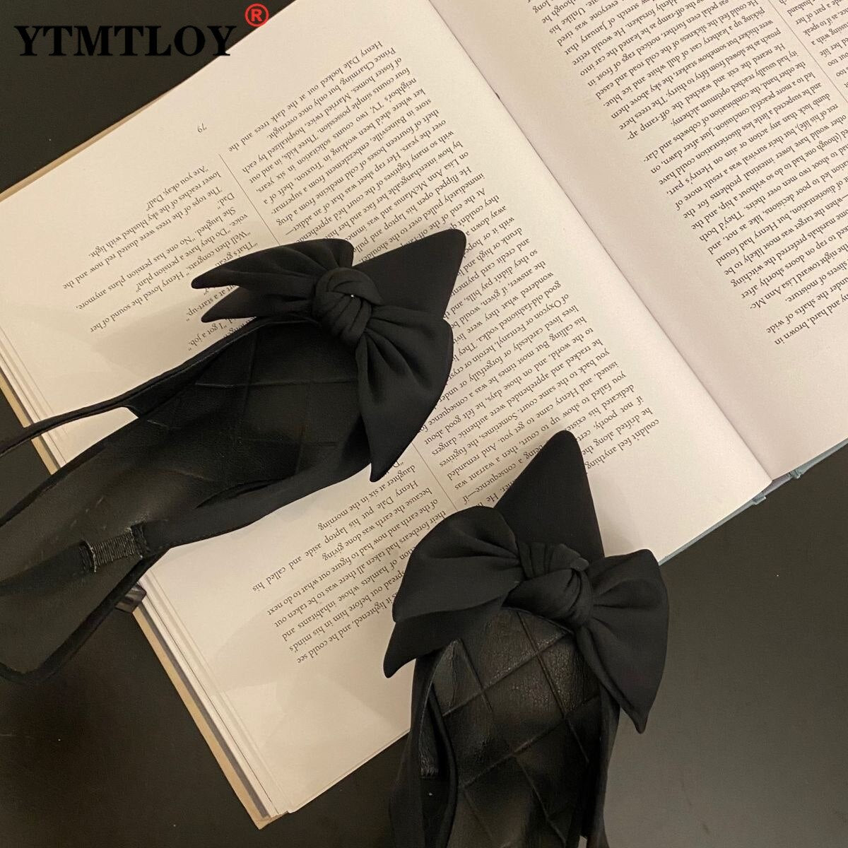 New Women's Shoes Pointed Toe Shallow Nude Pink Diamond Low Heel Back Strappy Shoes Women Green Heels Sandals Butterfly-knot