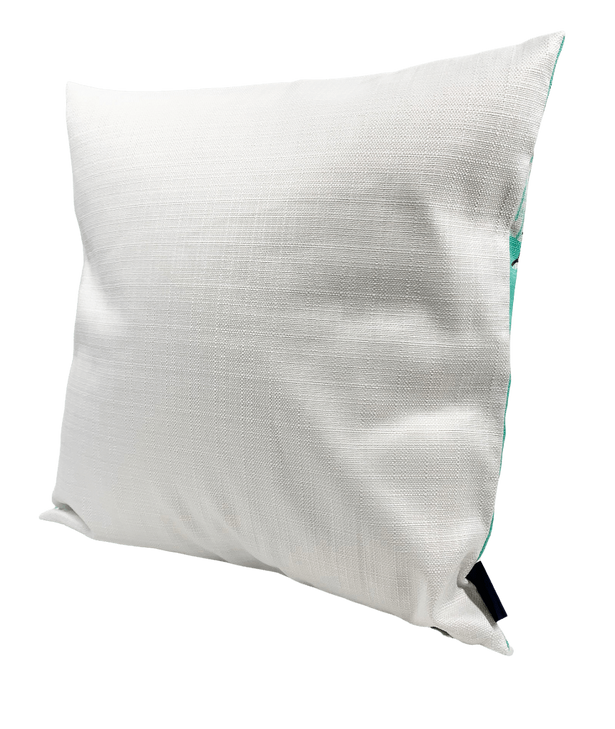 The fabric design has interesting geometric shapes (hexagons) that are outlined in white with variations of teal...