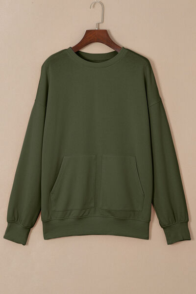 Pocketed Round Neck Dropped Shoulder Sweatshirt
