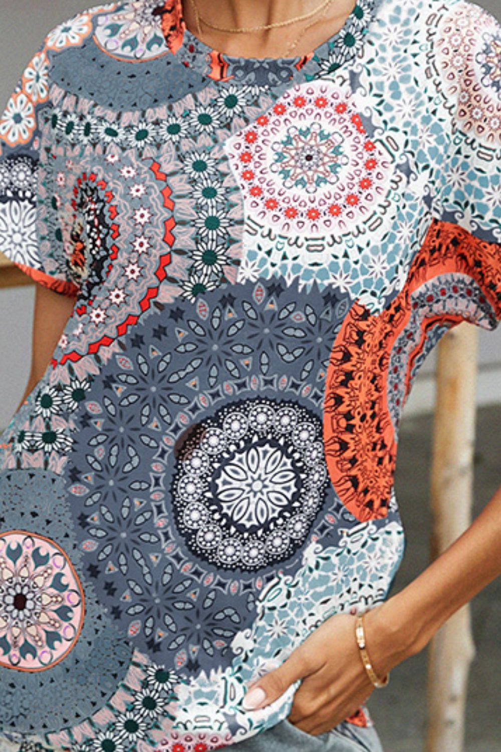 Pattern type: Paisley Style: Casual, chic Features: Basic style Neckline: Round neck Length: Regular Sleeve length: Short...
