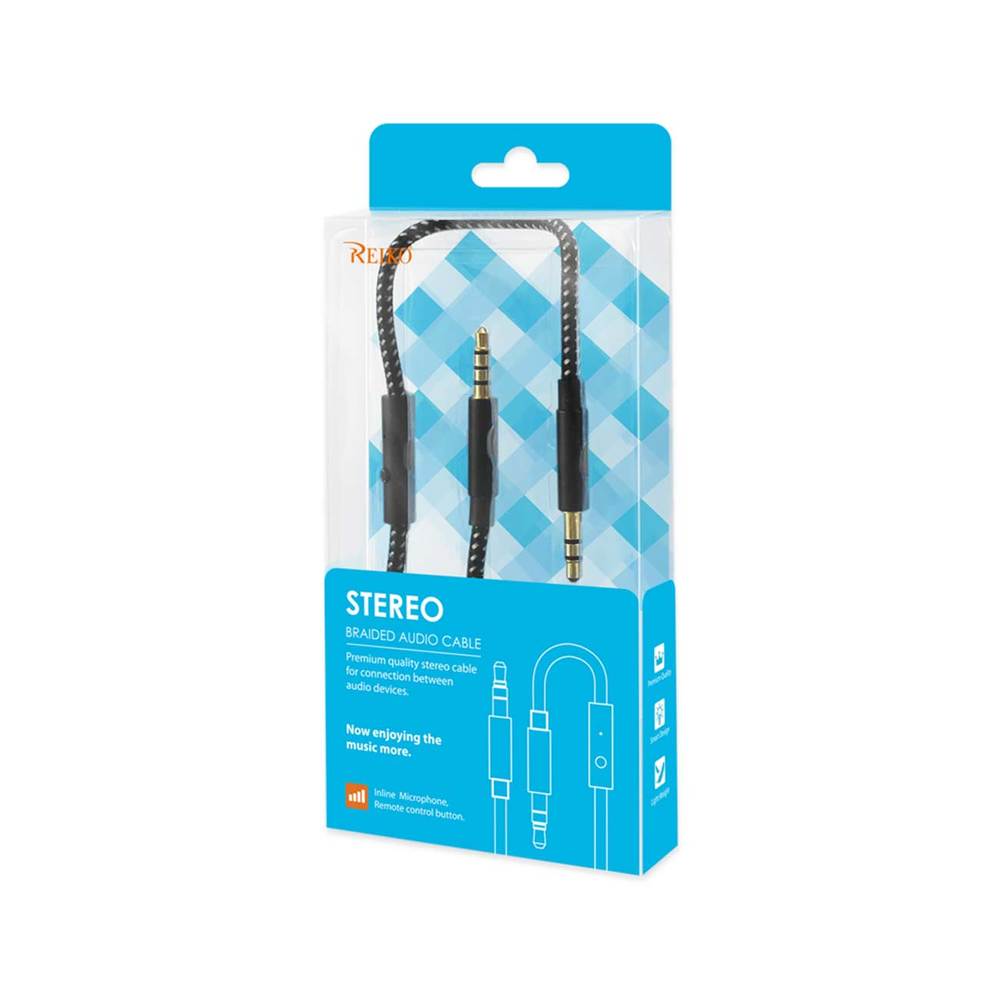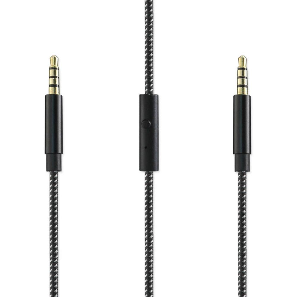 Reiko 3.5mm Nylon Braided Stereo Audio Aux Cable With Microphone 4ft In Black