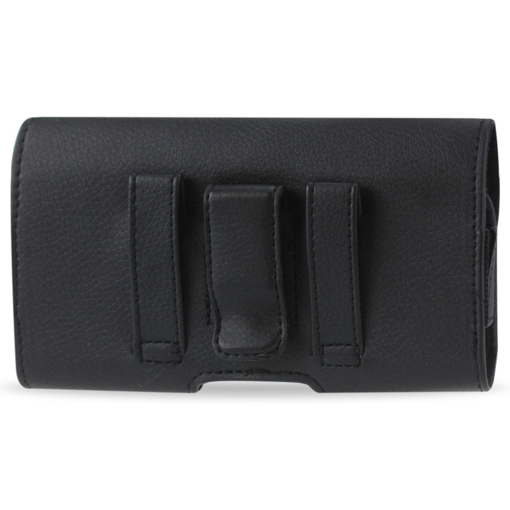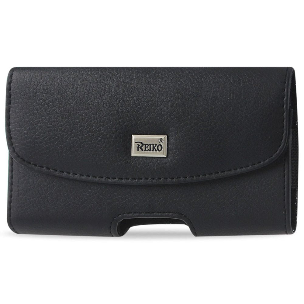Reiko Horizontal Leather Pouch With Embossed Logo In Black (6.1x3.3x0.5 Inches)