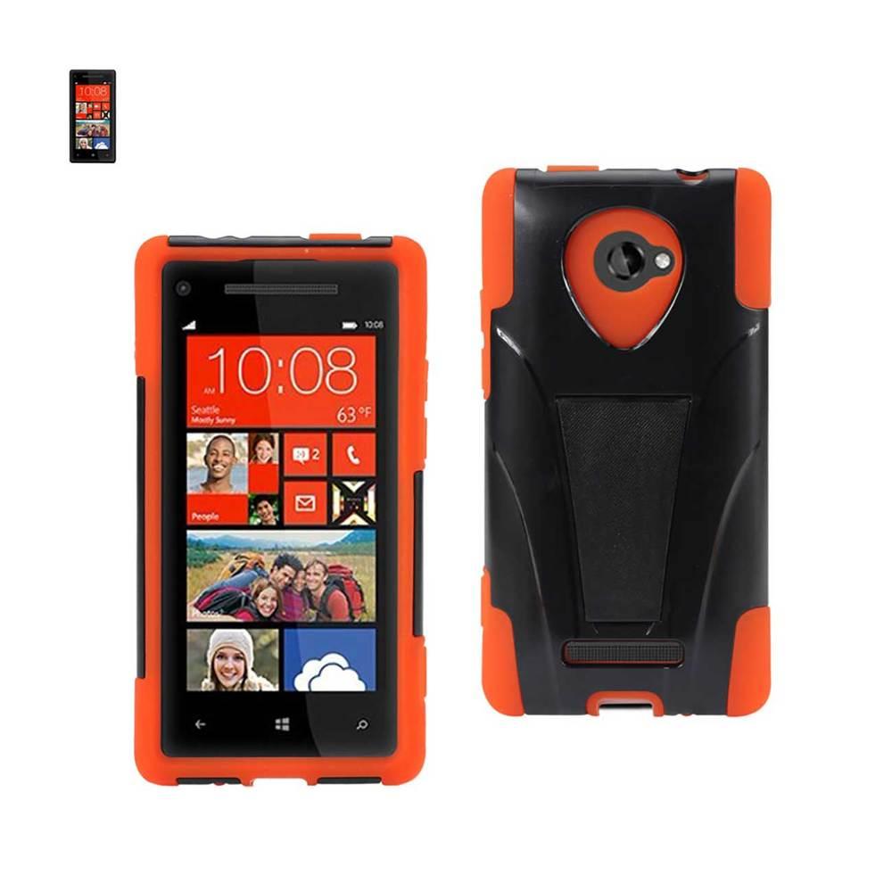 Reiko Htc Windows Phone 8x Hybrid Heavy Duty Case With Kickstand In Black Orange