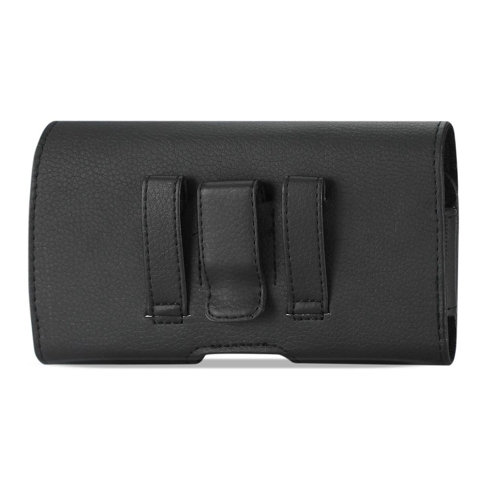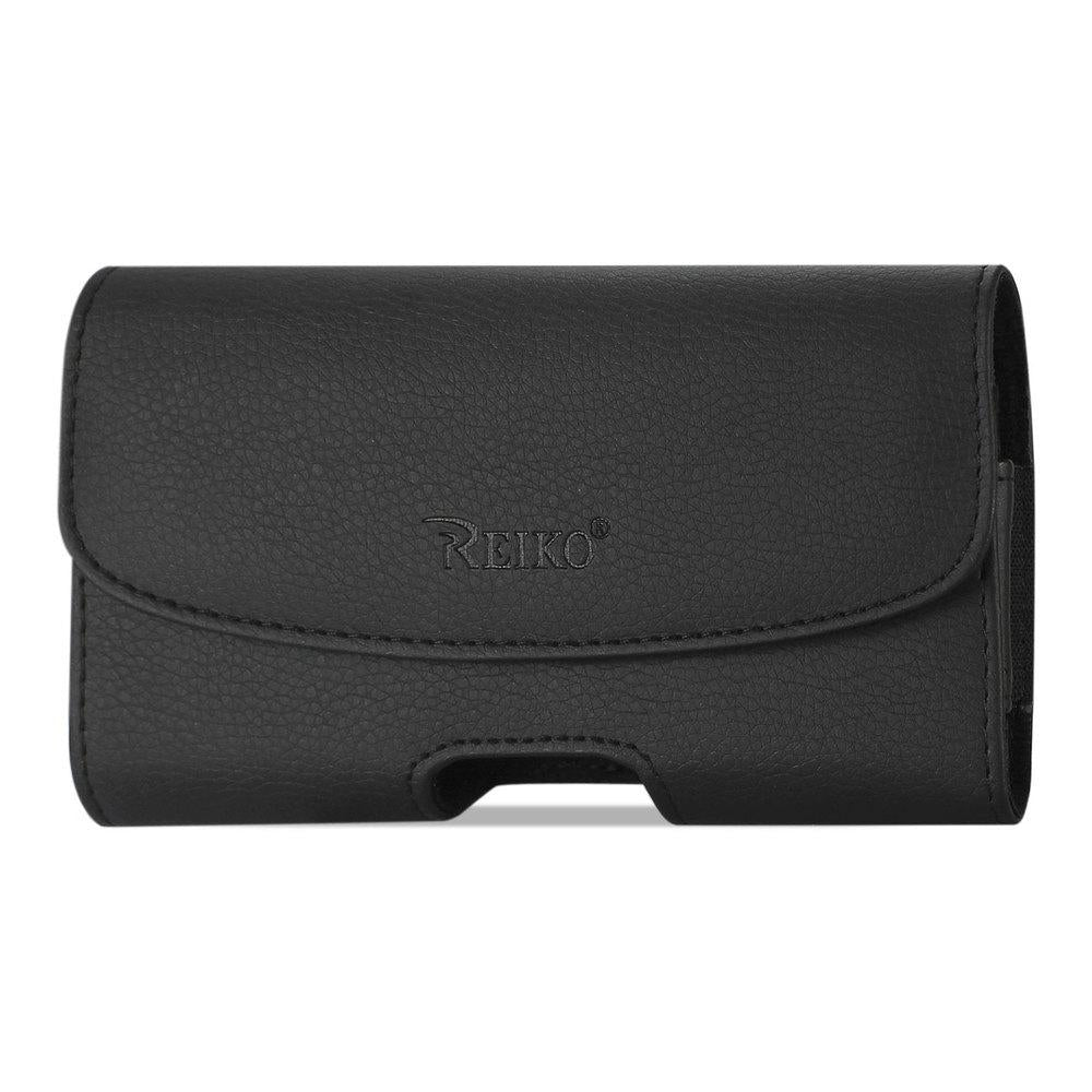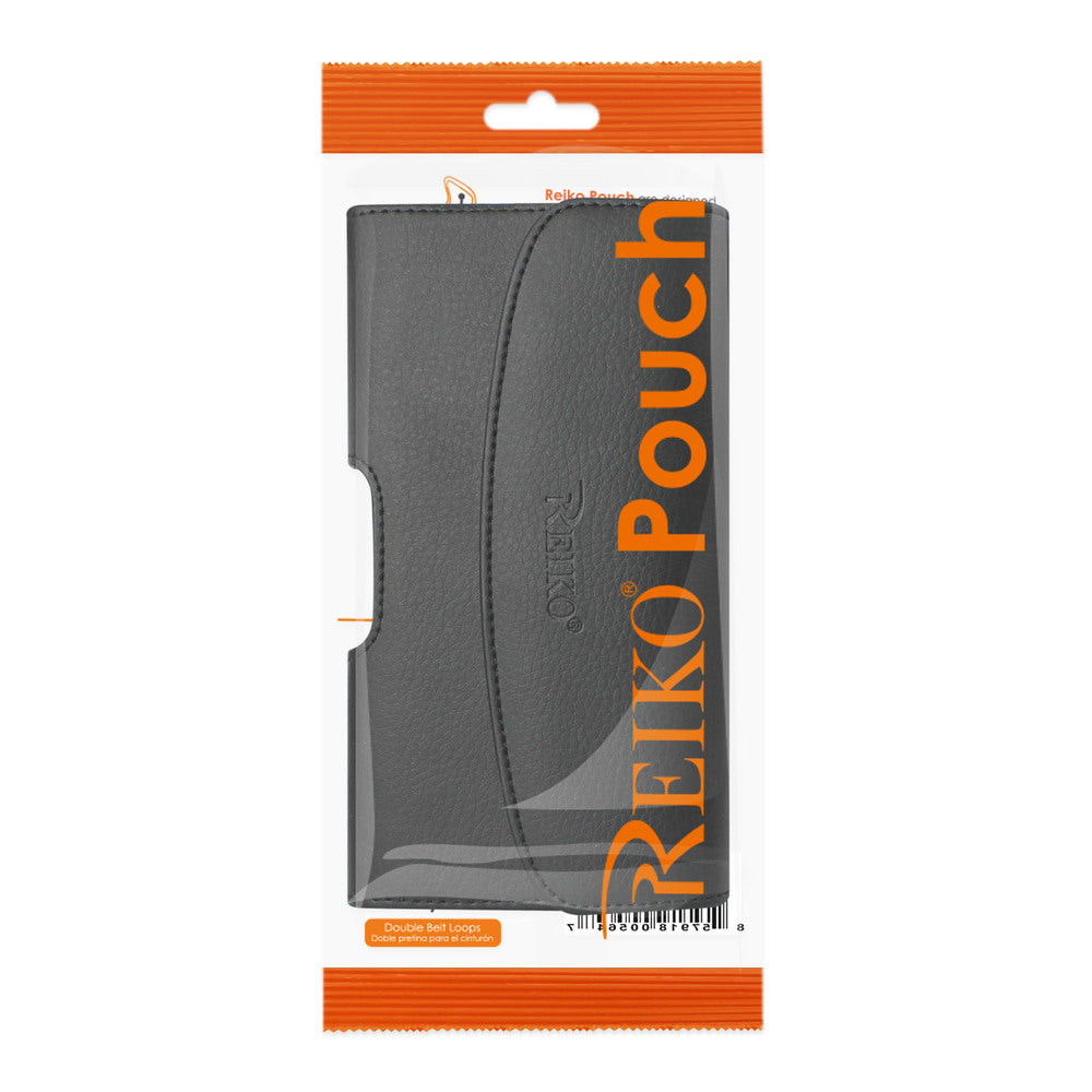 Reiko Leather Horizontal Phone Pouch With Embossed Logo In Black (5.2x3.0x0.8 Inches)