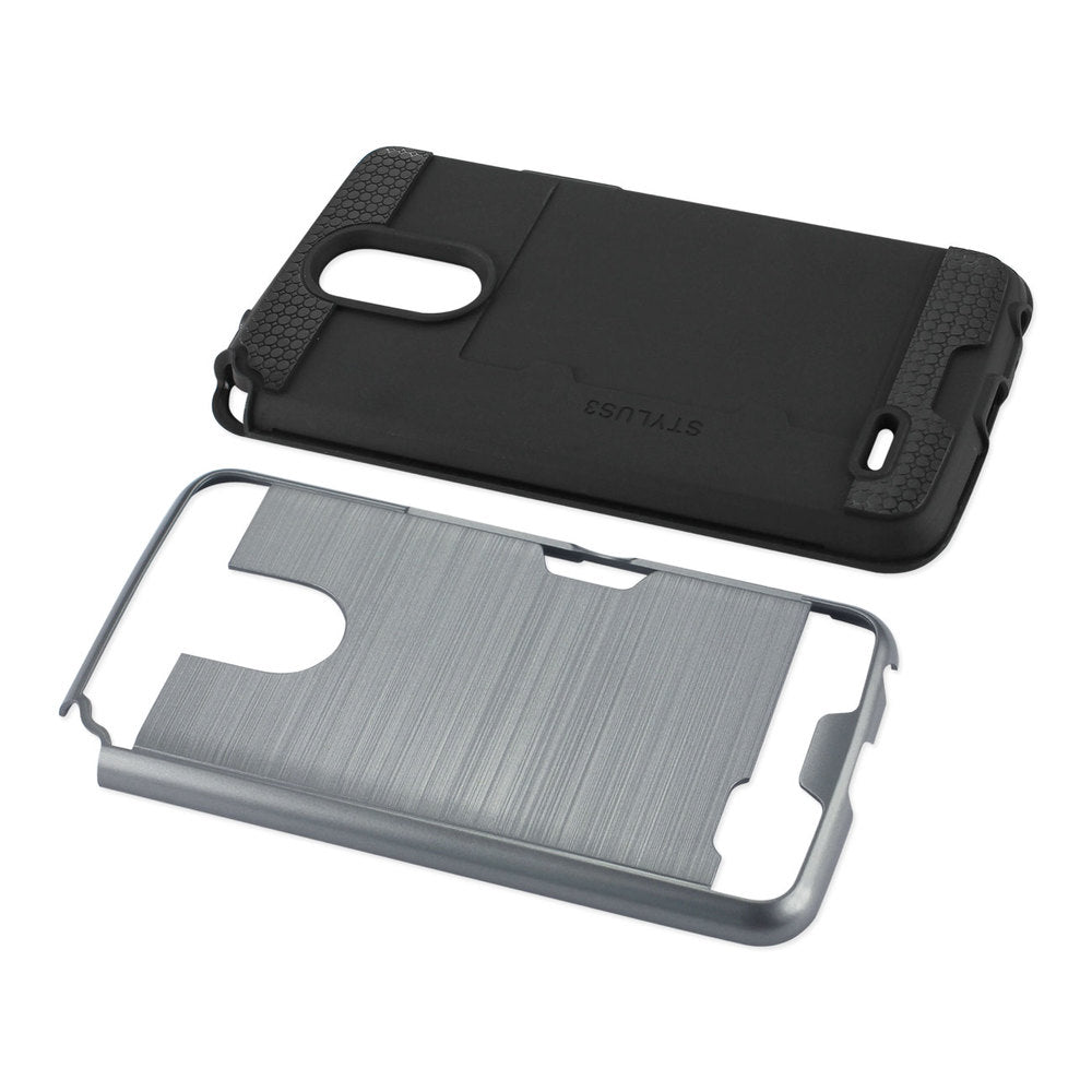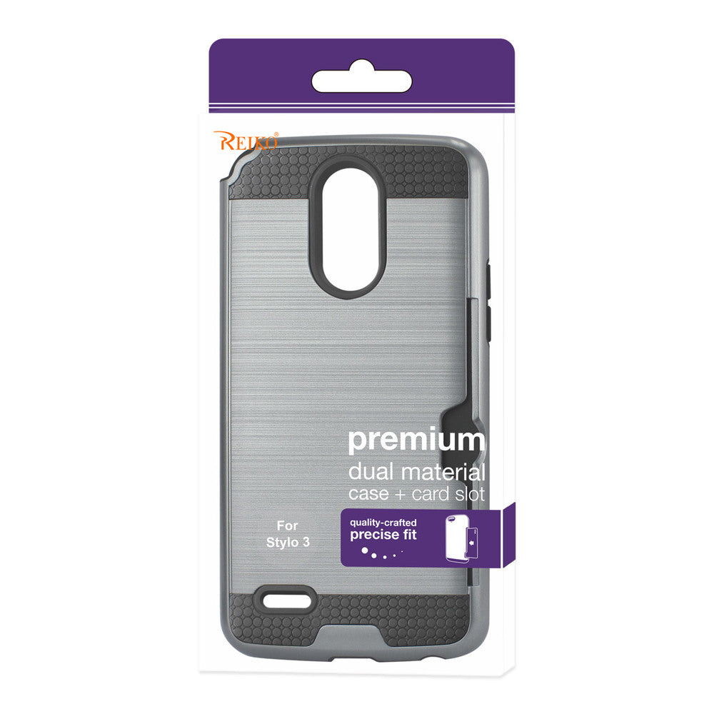 Reiko Lg Stylo 3/ Stylus 3 Slim Armor Hybrid Case With Card Holder In Gray