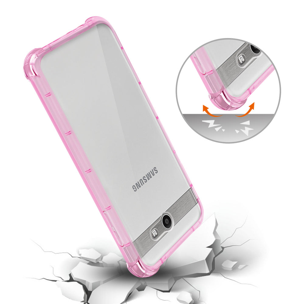 Reiko Samsung Galaxy J7 V (2017) Clear Bumper Case With Air Cushion Protection In Clear Hot Pink