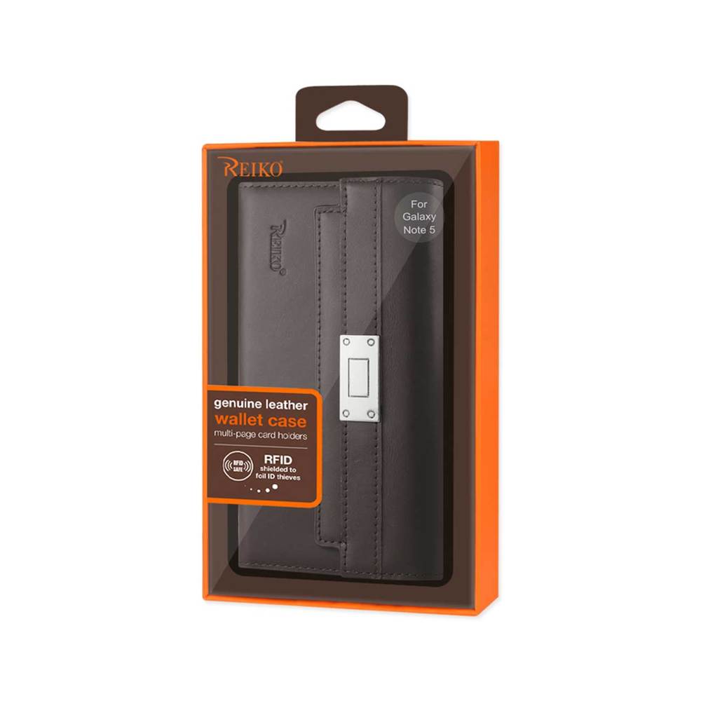 Reiko Samsung Galaxy Note 5 Genuine Leather Rfid Wallet Case And Metal Buckle Belt In Umber