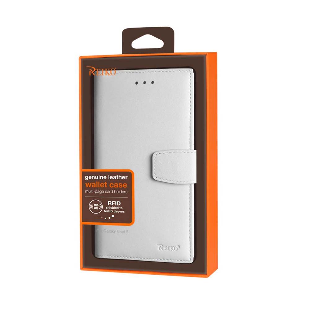 Reiko Samsung Galaxy Note 5 Genuine Leather Wallet Cases With Rfid Card Protection In Ivory