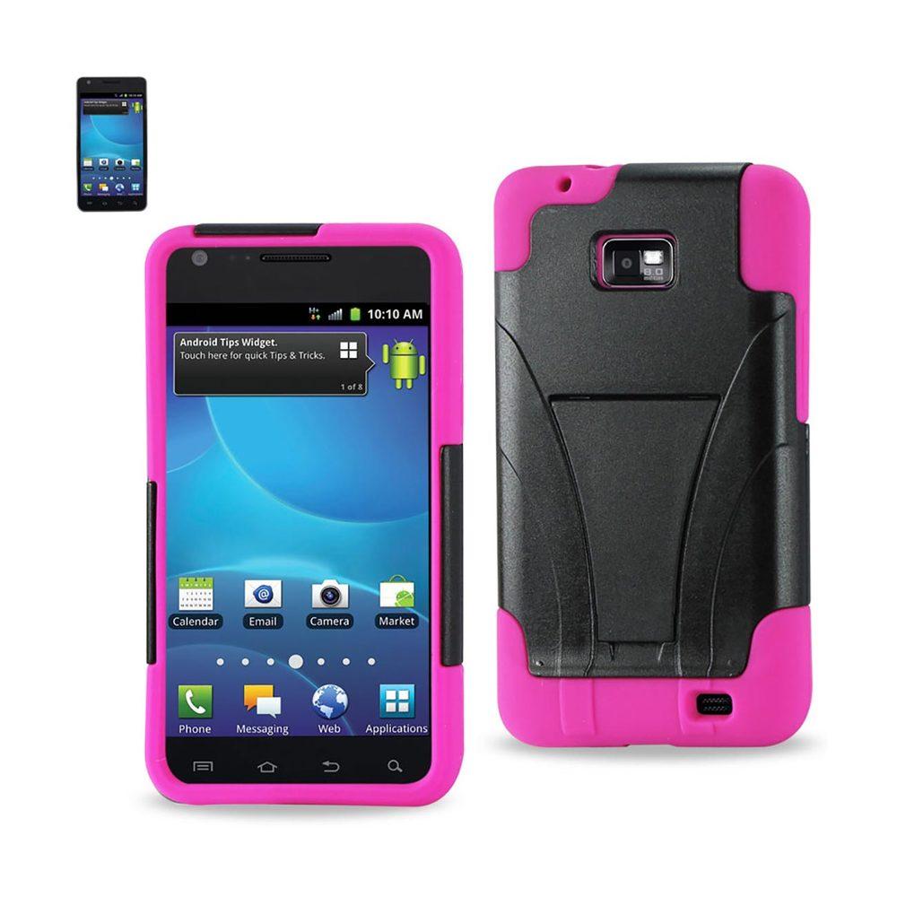 Reiko Samsung Galaxy S2 Hybrid Heavy Duty Case With Kickstand In Hot Pink Black