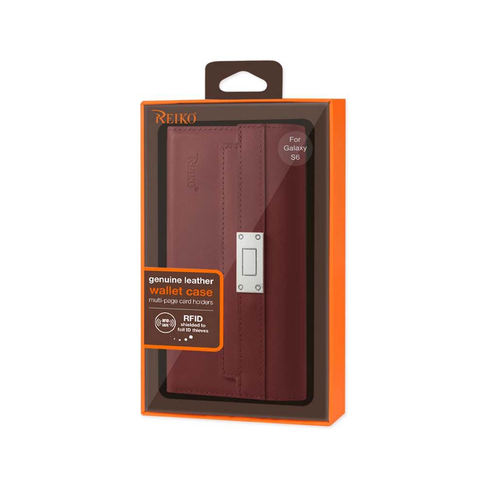 Reiko Samsung Galaxy S6 Genuine Leather Rfid Wallet Case And Metal Buckle Belt In Burgundy