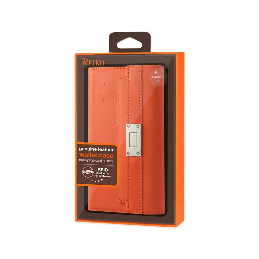 Reiko Samsung Galaxy S6 Genuine Leather Rfid Wallet Case And Metal Buckle Belt In Tangerine