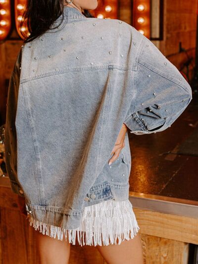 Rhinestone Detail Button Up Denim Jacket