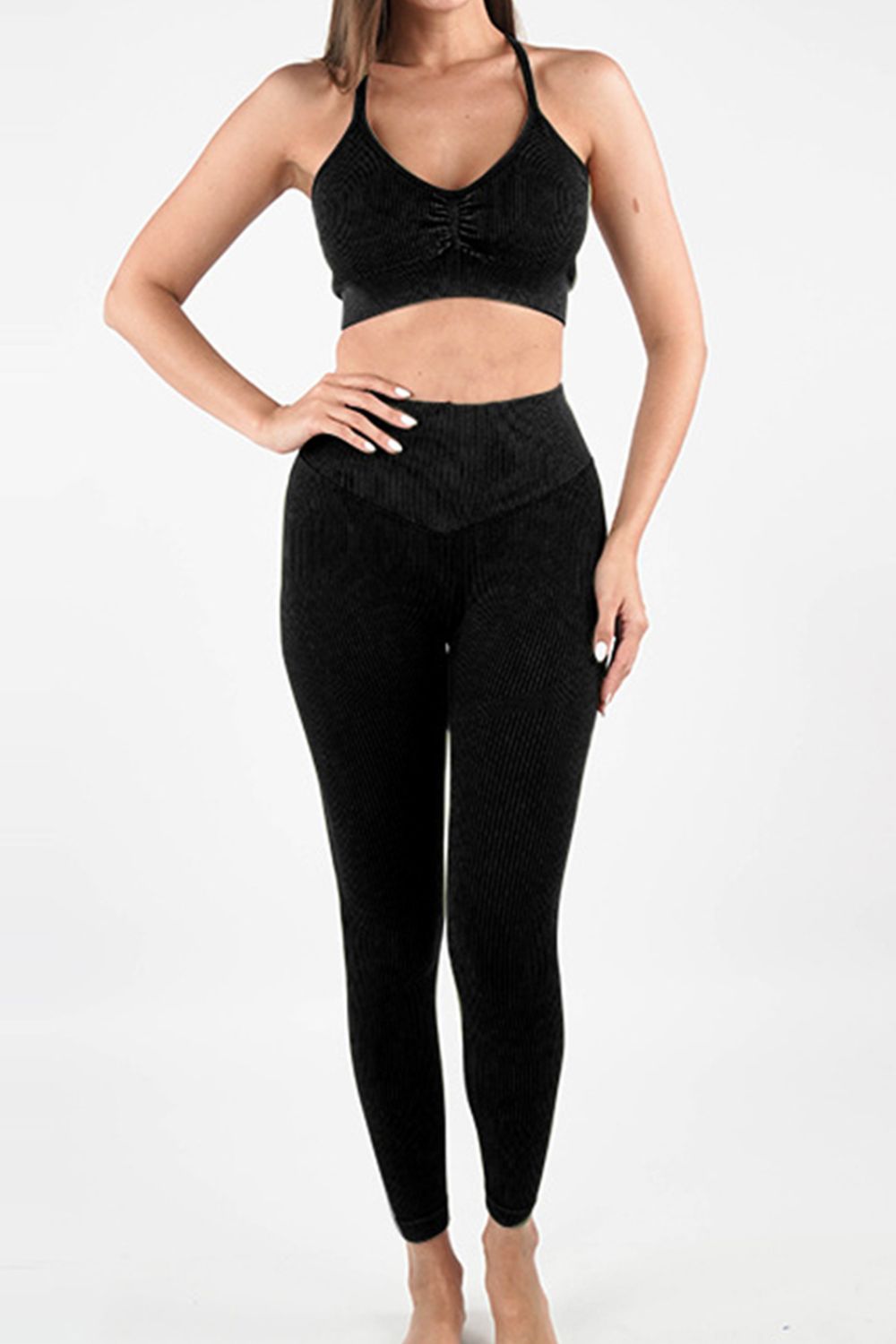Ruched Spaghetti Strap Top and Pants Active Set