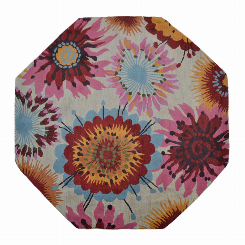 Rugsotic Carpets Hand Tufted Wool Octagon Area Rug Floral
