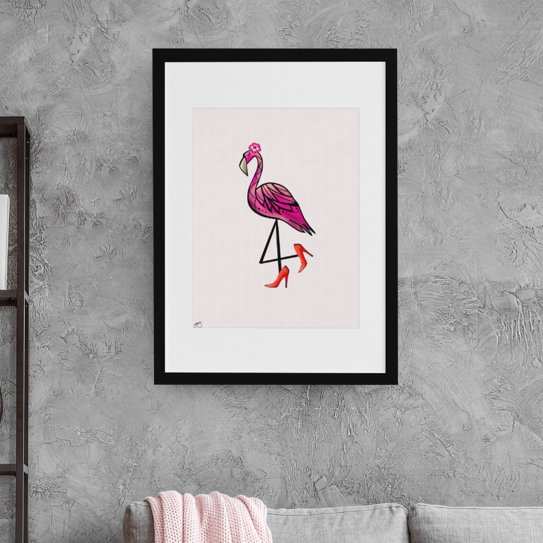 Sassy Flamingo with Heels Wall Art Print