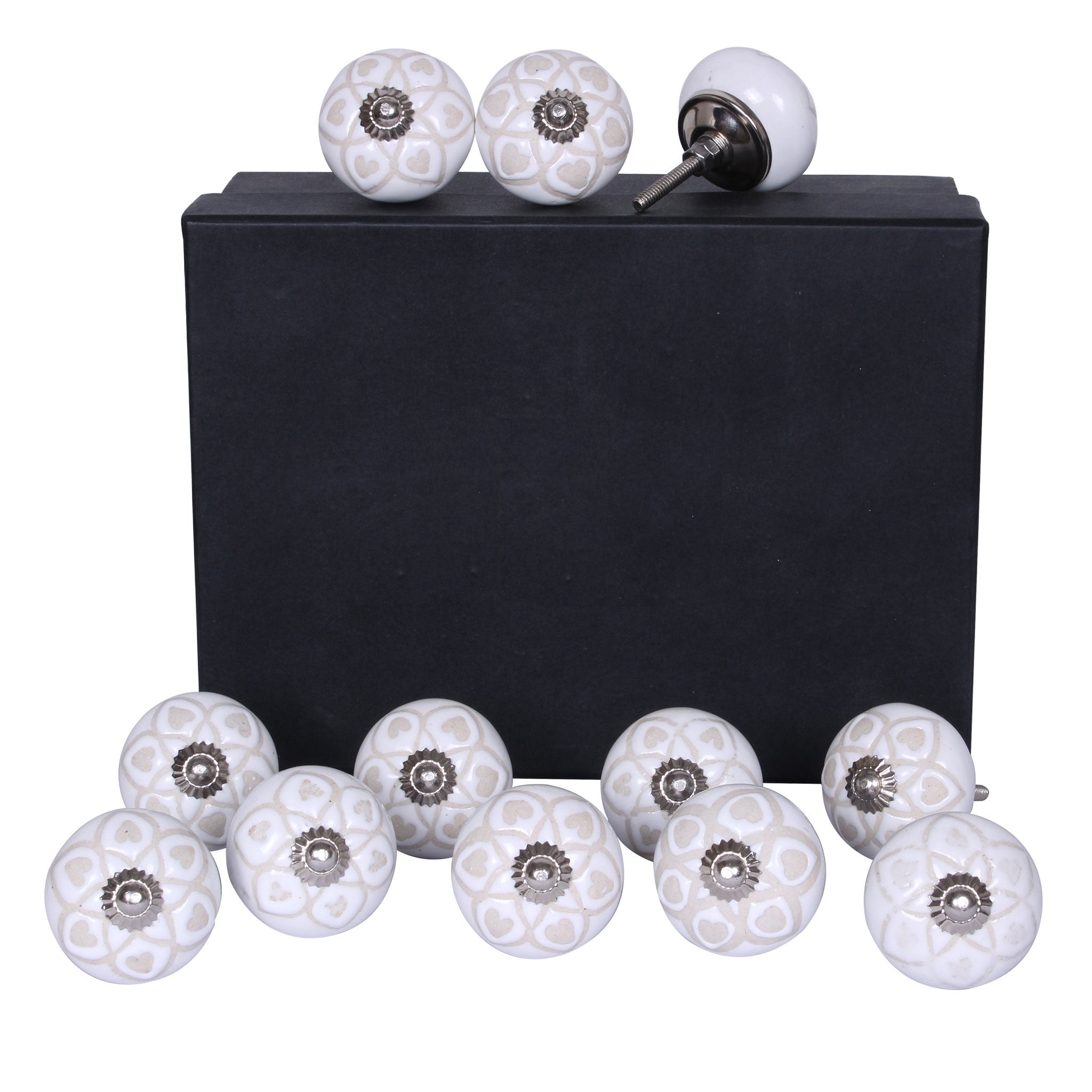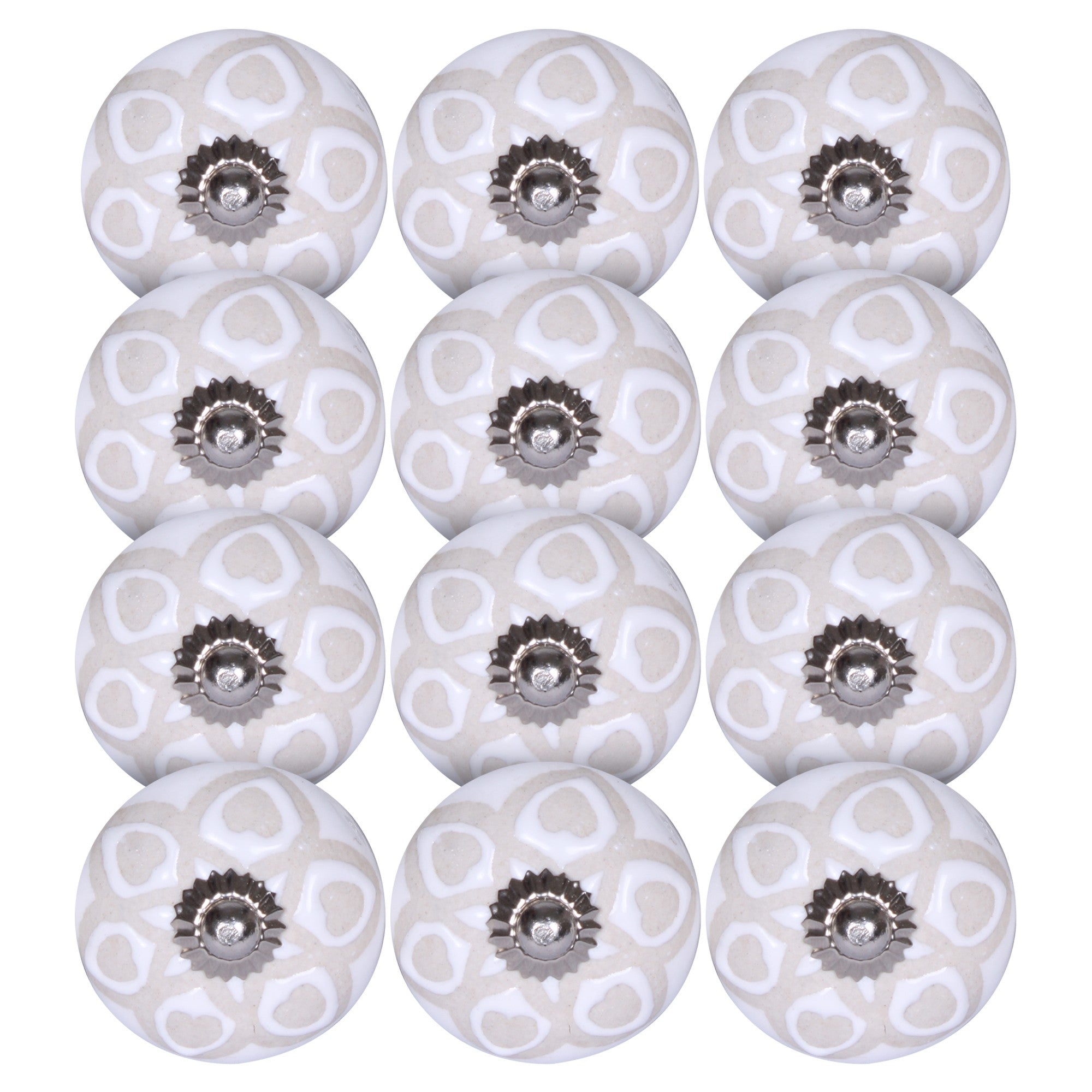 This Set of 12 Vintage Style White and Beige Circles Ceramic Knobs comes with a refined design...