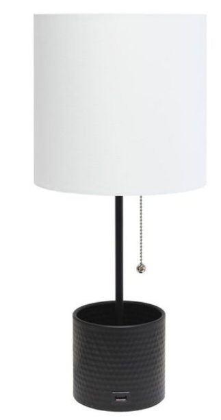 Simple Designs Hammered Metal Organizer Table Lamp with USB charging port and Fabric Shade