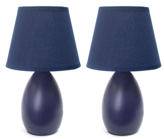 Simple Designs Mini Egg Oval Ceramic Table Lamp 2 Pack Set