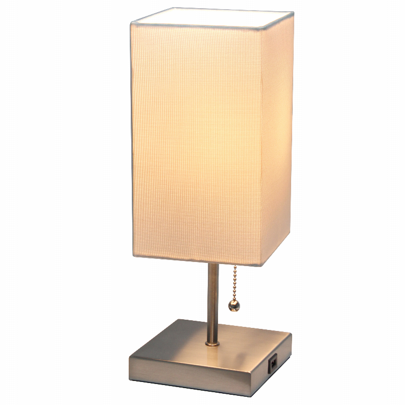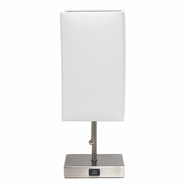 Simple Designs Petite Stick Lamp with USB Charging Port and Fabric Shade