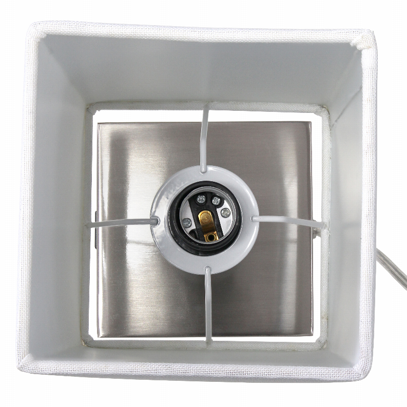 Simple yet fun, this fashionable table lamp features a brushed nickel base and a fabric shade. It...