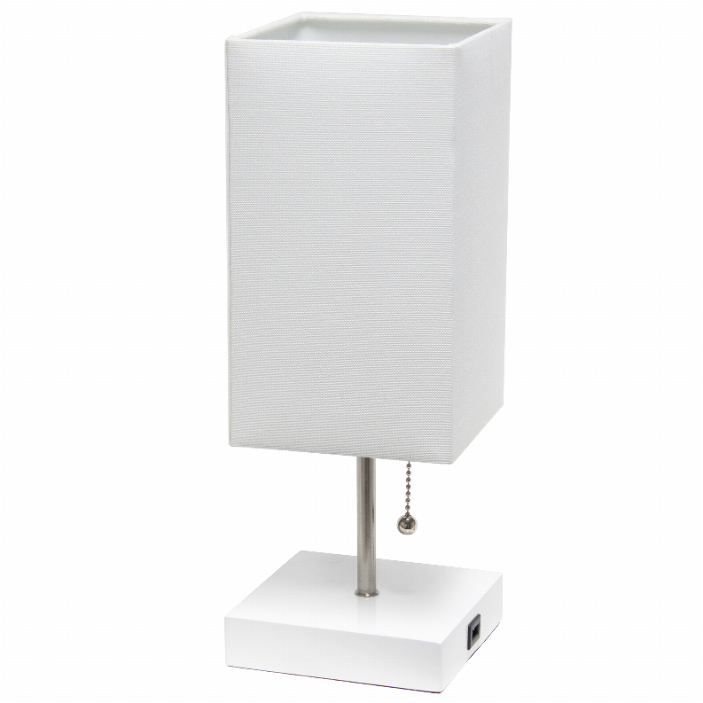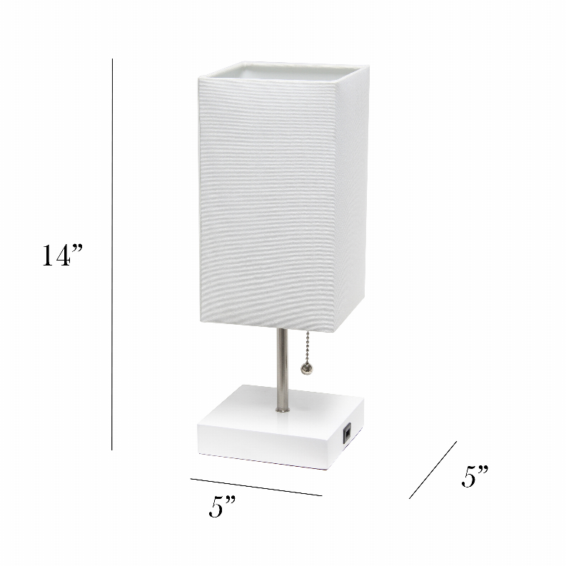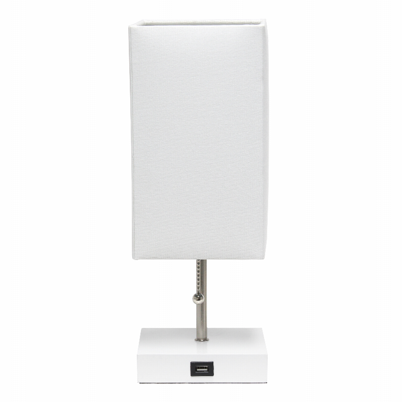 Simple Designs Petite White Stick Lamp with USB Charging Port and Fabric Shade