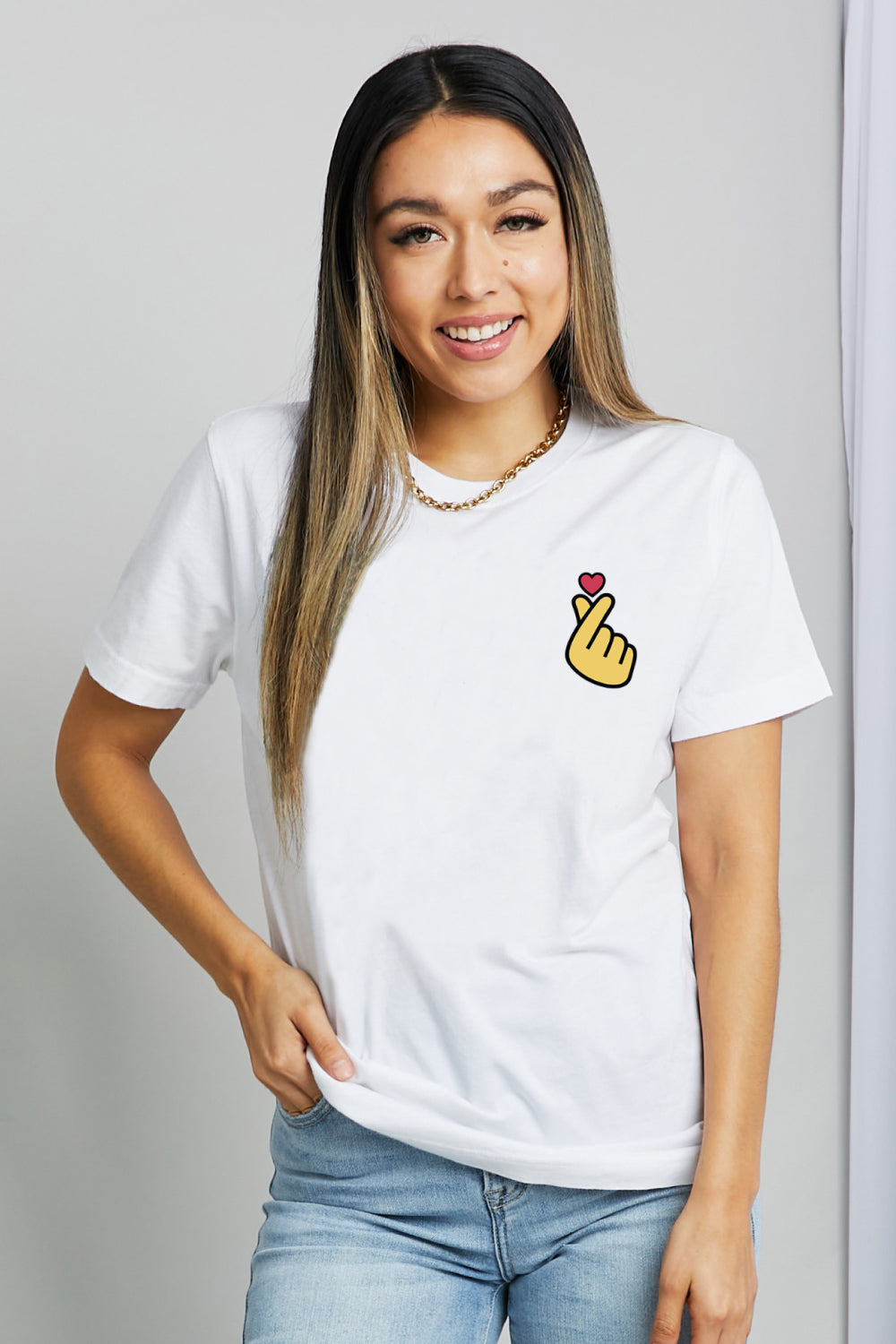Simply Love Finger Heart Emoji Graphic Cotton T-Shirt