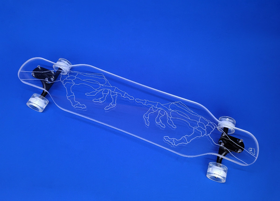 Style: Skeleton Hand 40" Platypus, Black Trucks and White Light Up Wheels