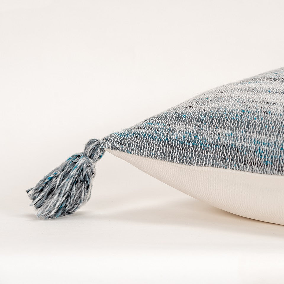 Teal Gray Boho Weave Indoor Outdoor Throw Pillow