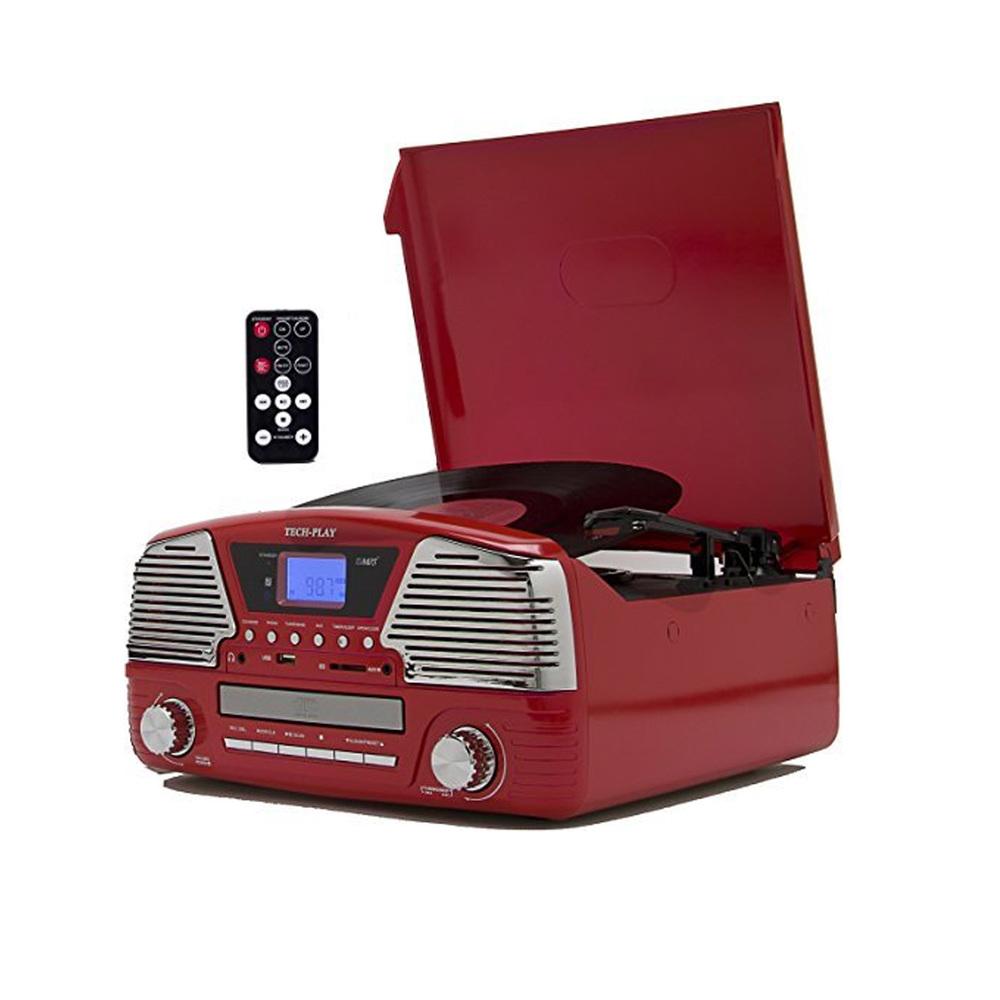Techplay 3 Speed Turntable, Programmable Mp3 Cd Player, Usb/sd, Radio & Remote Control In Red