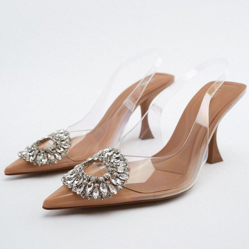 TRAF 2023 Woman Transparent Heels Women Pumps Rhinestone High Heels Spring Summer Butterfly Heels Sandals Slingback Heeled Shoe