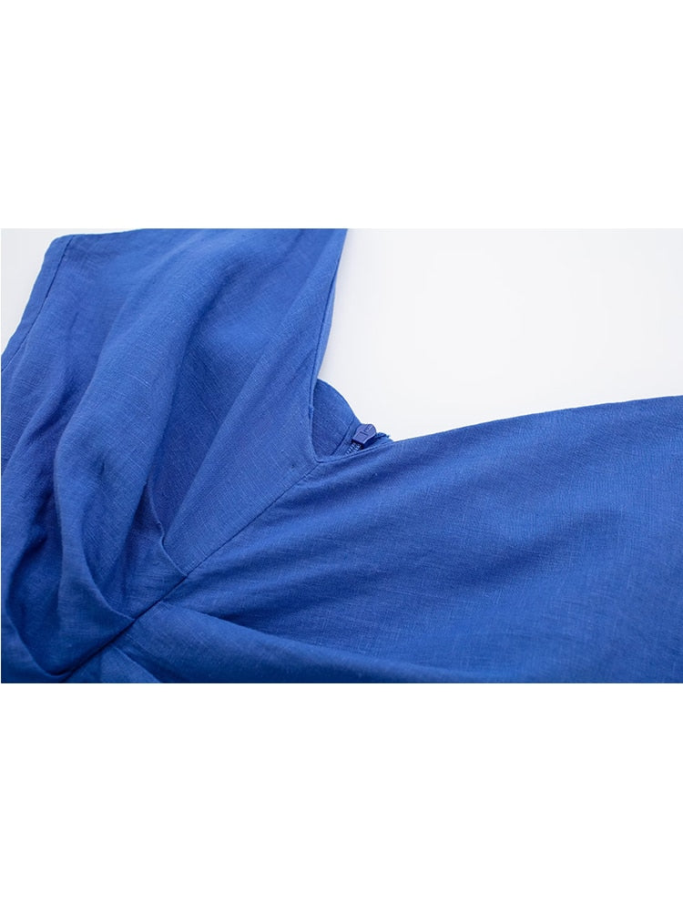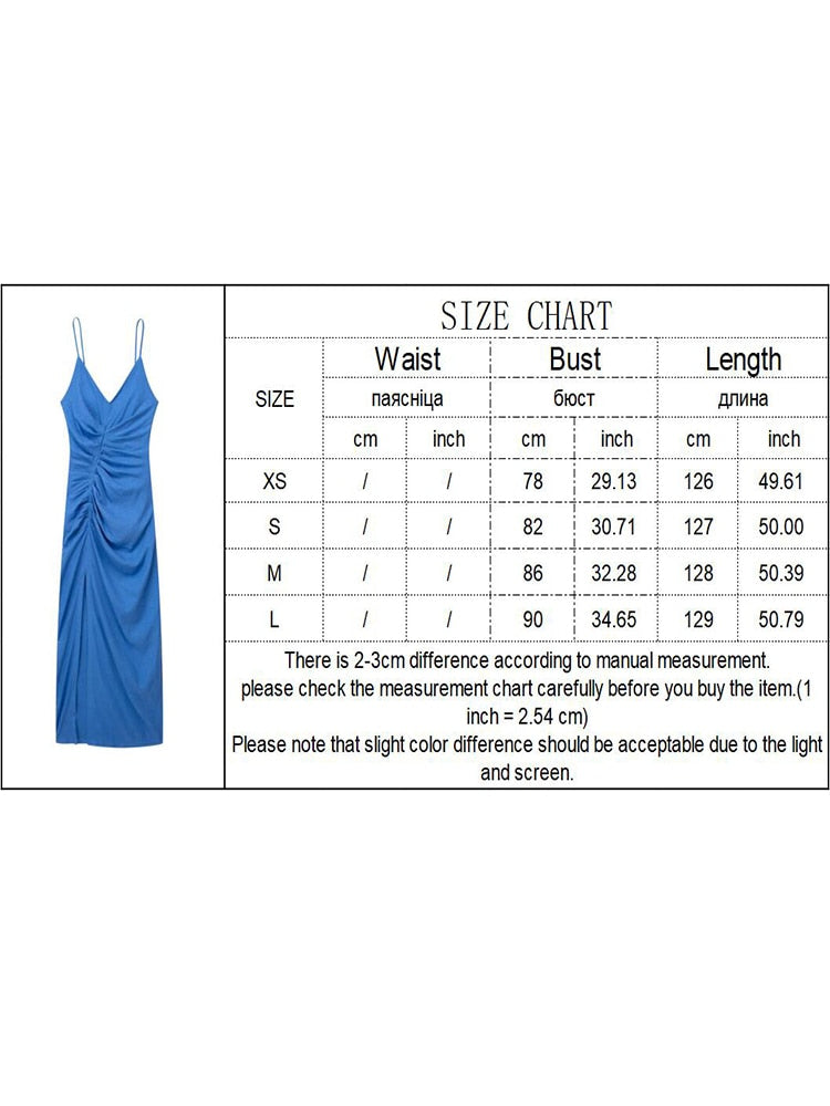 TRAF Summer Women Solid Dress 2023 New Beach Style V-Neck Pleated Decoration Mid-Calf Side Slit Sheath Spaghetti Strap Dress